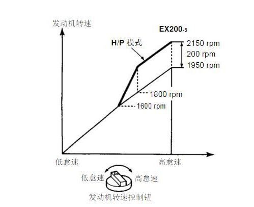 當發動機需要較大的功率時,這種模式可以自動增加發動機的轉速和功率。也就是說,當挖掘機在重負荷工作時,動臂伸出或斗桿收回時適合采用這種工作模式。
