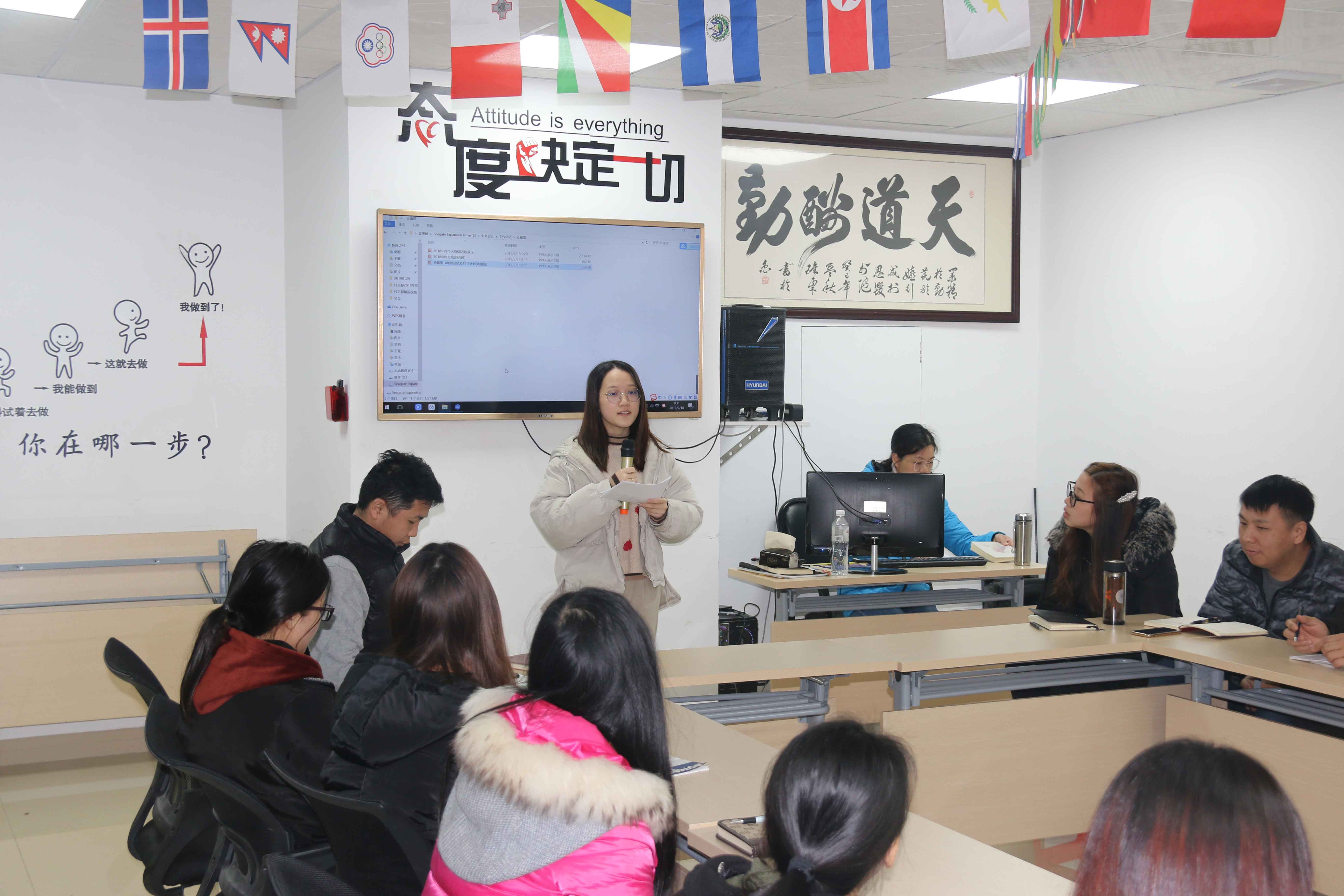 倉儲部、銷售部、外貿部、電商部各部門代表給大家做2018年工作總結報告,根據分析來制定2019年的規劃,明確目標才能努力前行。